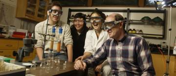 Once, one of Hoggard’s summer students stopped by the office to see him. He was helping her with experiments to study the chemical reaction of a purple solution that turned yellow when light was shined on it. She told him that something very odd was happening. The reaction was going back to purple after a while.