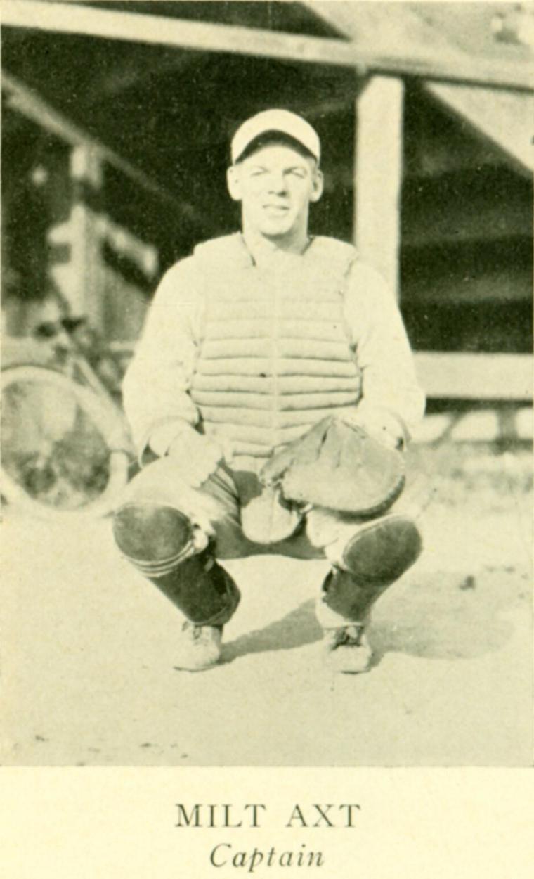 Axt was a star catcher for the Broncos, and was also phenomenal at bat. Axt played baseball for two years under Justin Fitzgerald’s. Freshman year, he also played Frosh Football for Pat Connolly. His sophomore year the Varsity Baseball team went 16-2, including 3 straight victories over Stanford. The same year he played Halfback for the Broncos. Axt was captain for the Baseball Team during his junior year season under the leadership of a new coach,“Marv” Owens. Senior year, Axt switched gears and tried his hand at coaching for Santa Clara’s Frosh. Football Team.