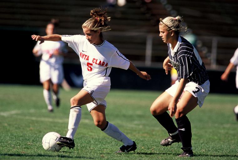 Mandy Cavan was a two-time First-Team All-American while at Santa Clara. Cavan played in 95 games and scored 67 goals with 67 assists. Both her goals and assists totaled the most in Santa Clara’s history. In her senior season of 1999 she was awarded the Hermann Trophy and was named NSCAA Division I Player of the Year and the Missouri Athletic Club Player of the Year. That year she set Santa Clara records for most assists in a season (23) and points (71) while finishing second in goals with 24. Cavan won three straight WCC player of the year awards and was named First Team All-WCC each of those seasons, while making Second-Team in her first year. She was also named a First Team All-American in the both of her final two seasons at Santa Clara. Her No. 5 jersey was retired in 2013, making it the fifth honored jersey in Buck Shaw Stadium.