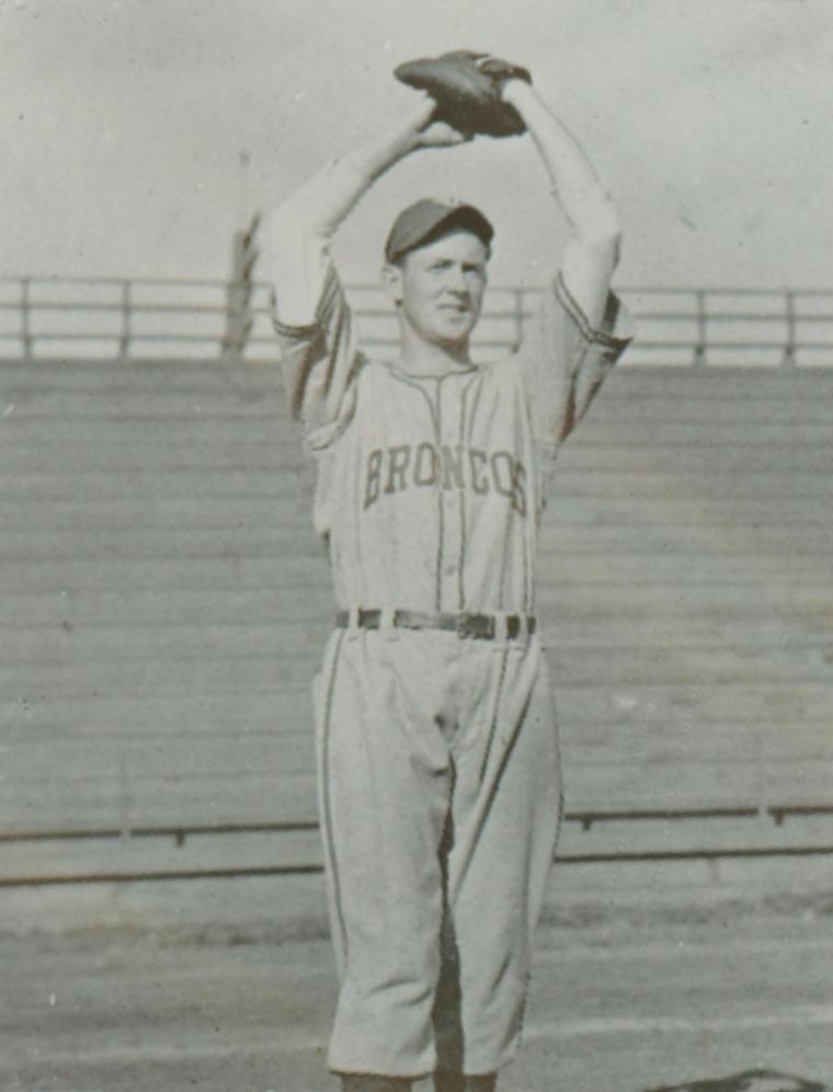 Russell Lebeck was a standout baseball player for the Broncos in the early 1940’s. Lebeck was known to be a wizard on the mound, easily reading the batter. Due to his stellar play, he was voted captain of the baseball team. During this season, he helped shut out the powerhouse Bruins in the first seven innings, leading to a big win for the Broncos.