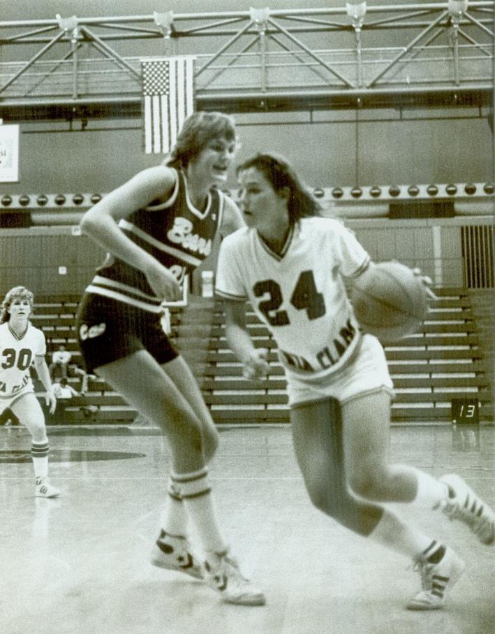 Suzanne Seandel (Meckenstock) was a standout player for Women’s Basketball in the 1980s. She led the team in scoring and steals two years in a row. She also led the team in assists for one season. Seandel (Meckenstock) ranks in the top-20 in Bronco history for career points (1,144), scoring average (11.4), field goals (452), assists (291), and steals (141). Averaging 16.6 ppg and leading the team in steals, she earned a selection to the All-WCC First Team for the 1985-1986 season. Seandel (Meckenstock) was inducted into Santa Clara’s Hall of Fame in 1999.