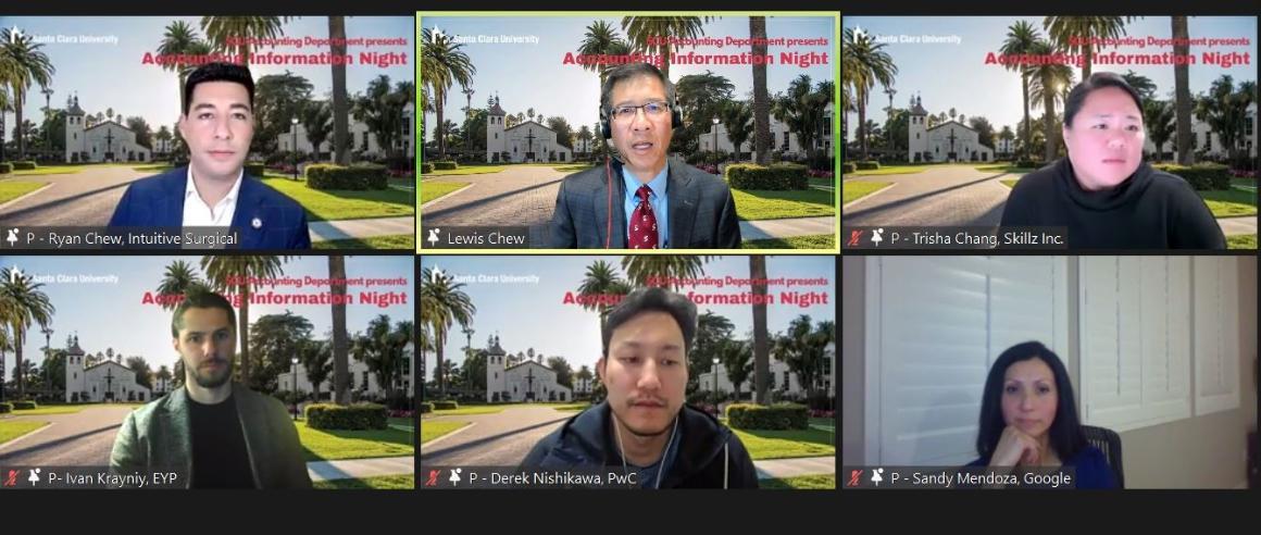 This year the SCU Accounting Association (SCUAA) merged its annual Meet-the-Firms Night with the virtual Career Center Fall BASH held on Tuesday, September 30, 2020 from 12 PM to 4 PM. The event was open to all SCU students including undergraduates, graduates, and CAAP students.