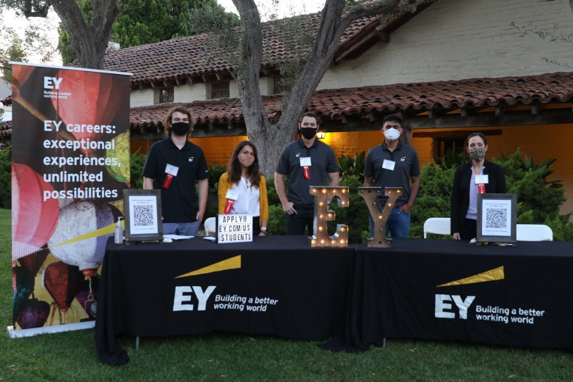 The SCU Accounting Association (SCUAA) hosted the annual Meet-the-Firms Night on Tuesday, September 28, 2021 from 5 - 7 PM. Due to Covid considerations, this accounting career fair was held outside on the Mission Garden lawns.