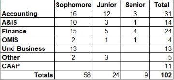 Undergraduate and CAAP students interested in accounting and A&IS opportunities, that have not yet accepted accounting internships or full-time positions, were invited to attend the event. To help students prepare for MTF, the SCUAA organized a Pre-MTF workshop the previous Thursday. Over 50 students attended this workshop where SCUAA presented helpful information on attire, conduct, conversation topics, and resume content, followed by a Q&A session. Noel Kreidler (Assistant Director - Career Development Specialist, Business & Entrepreneurship, Career Center) also attended to answer resume questions and provide guidance on resume\interviewing resources available to students.