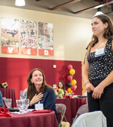 The Accounting Department hosted the Annual Accounting Awards Banquet in Locatelli Center on Wednesday, May 15, 2024. Over 75 professionals, faculty, students, and guests gathered to honor 28 of SCU Accounting & A&IS students as they received scholarships and awards. Several of our Accounting Advisory Board members and Accounting Alumni Board members, as well as student awardee guests, also attended the festivities.