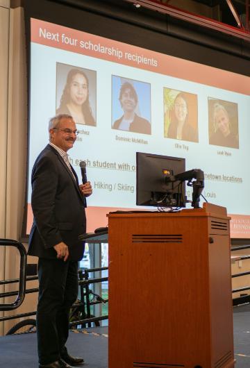 Accounting and A&IS majors submitted applications for these scholarships in March and April. Over $86,000 in scholarships and awards, funded by generous contributions and grants from accounting organizations, alumni, faculty, public accounting firms, and Silicon Valley Companies, were presented to the students. The evening commenced with a reception, followed by dinner, and an engaging awards program moderated by Dr. Michael Calegari and Dr. Siqi Li. Dr. Calegari challenged the audience about how well they know the student awardees and also shared fun facts about some of the activities our student awardees enjoy in their spare time.