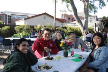 About 45 students and faculty gathered to celebrate the accounting and A&IS class of 2023 at the Santa Clara Women’s Club Adobe building from 5:00-7:00pm. Graduating seniors and SCU Accounting Association officers enjoyed a Mediterranean-style buffet dinner with professors Siqi Li, Matthew Cedergren, Kevin Li, Jane Ou, and Stacey Ritter, and Young Alumni board member Tiffany Wibowo (class of ’16 and Portfolio Manager at Blackrock).