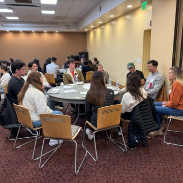 On February 22, 2024, the SCU Accounting Association and Alumni Board held a “Meet the Alumni” pizza social event in the Benson Parlors BC room for the Accounting and A&IS majors. 53 students attended.