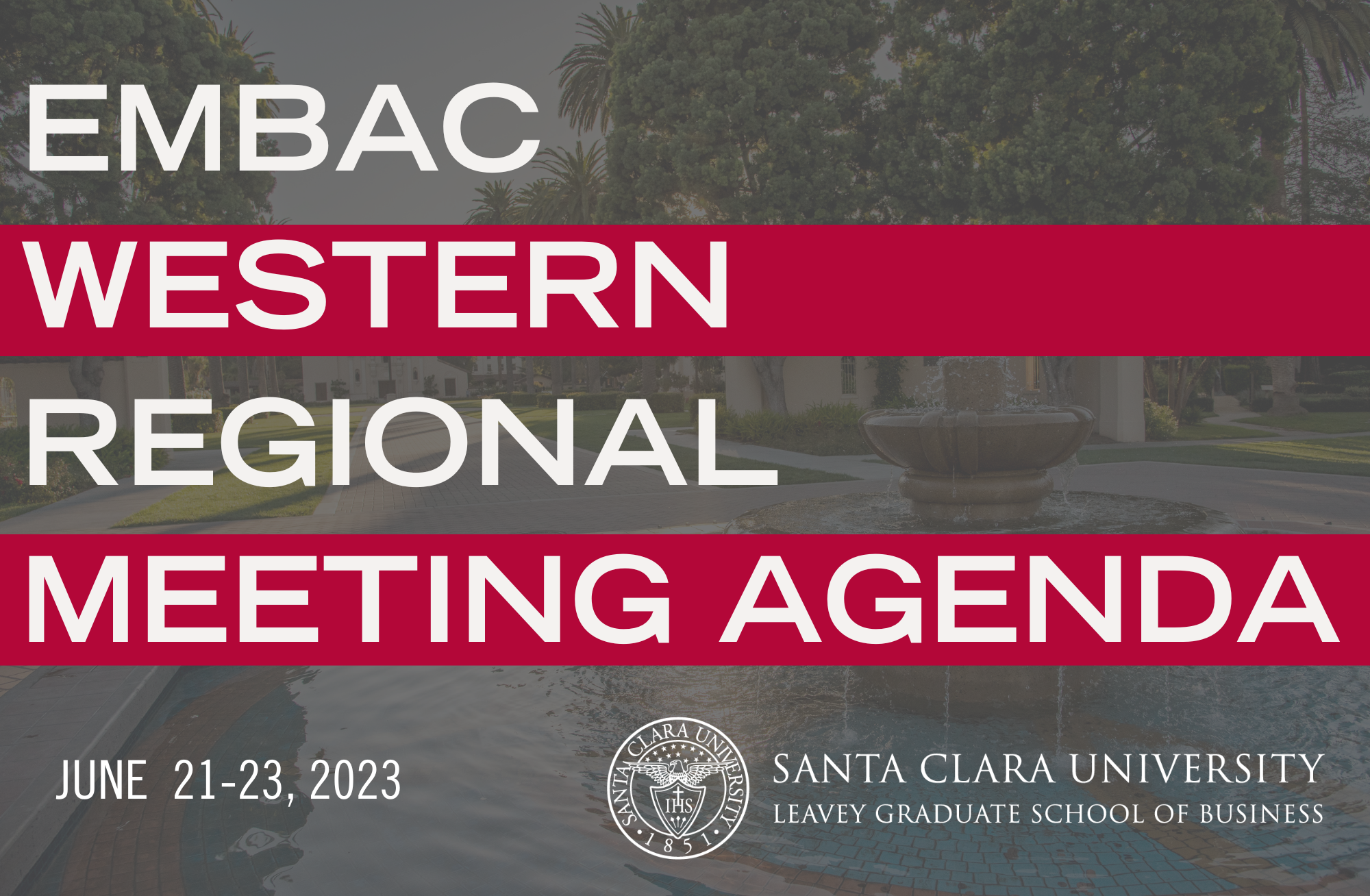 We look forward to welcoming you to Santa Clara and to the Leavey School of Business for this year's EMBAC Western Regional meeting. This event is a wonderful opportunity to connect with one another, expand your professional network and stay up to date with the latest trends in executive education.
