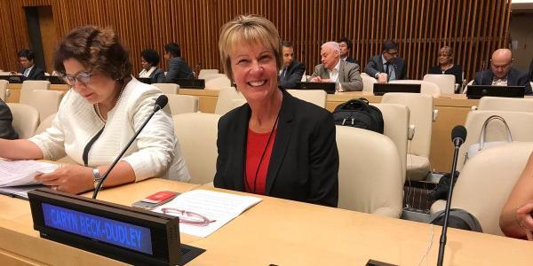 Leavey School of Business Dean Caryn Beck-Dudley spoke at the United Nations last week, May 11, about higher education and the vital role of small businesses in global development and economic prosperity.