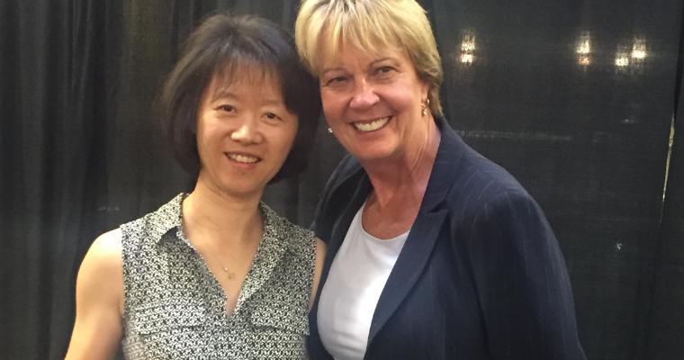 Siqi Li (left) and Dean Caryn Beck-Dudley at the Faculty Awards ceremony.