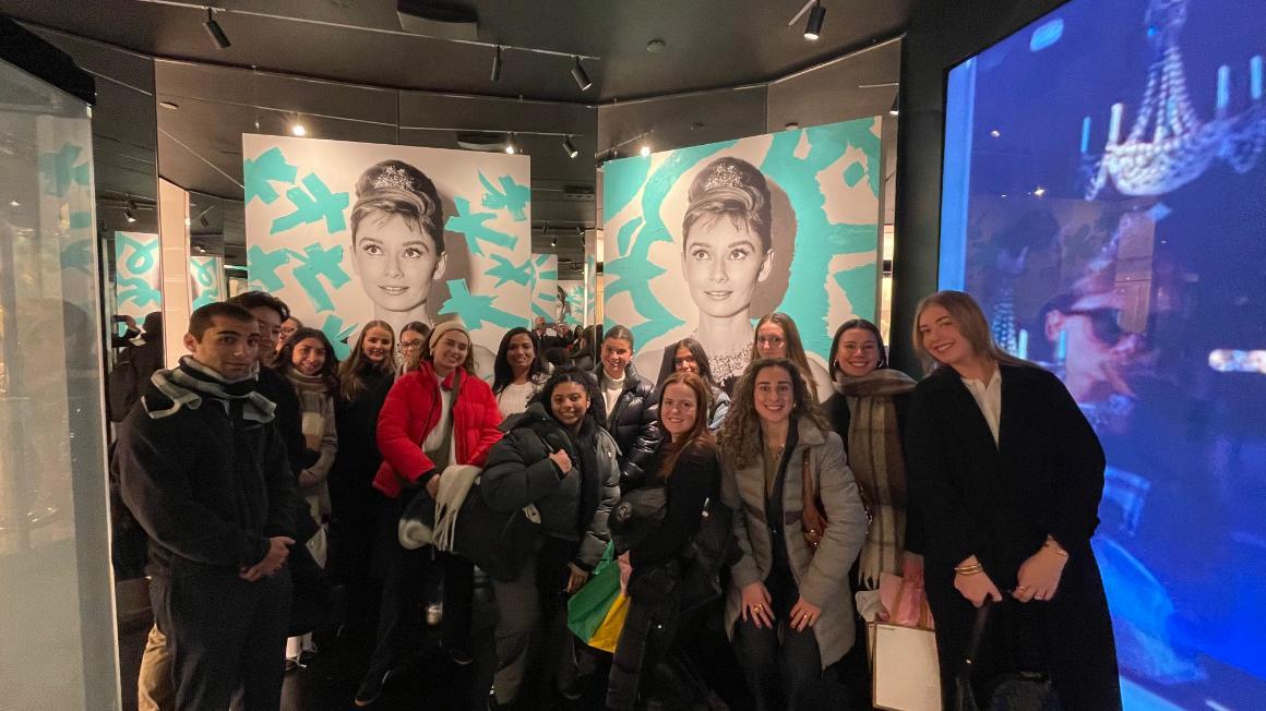 The group’s visit to Tiffany & Co. provided an in-depth look into luxury retail, where tradition meets modernity to create an immersive customer experience. Students explored brand storytelling, craftsmanship, and the artistry behind Tiffany’s globally recognized identity. Each floor of the store was intentionally designed, showcasing historical artifacts, artistic collaborations, and iconic collections that reflect Tiffany’s dedication to excellence. The tour highlighted the thoughtful integration of architecture, visual merchandising, and customer engagement strategies. A standout moment was the visit to the jewelry workshop, where students gained insight into the design process, materials, and the expertise required to create Tiffany’s signature pieces.