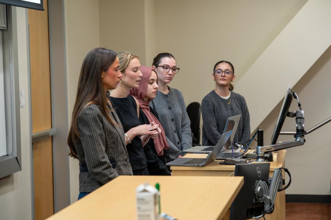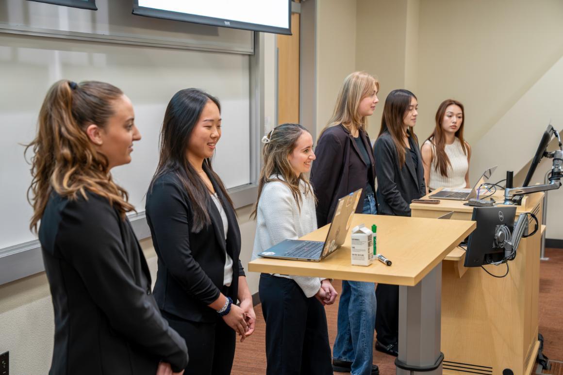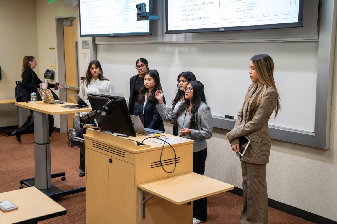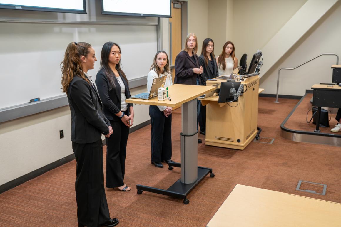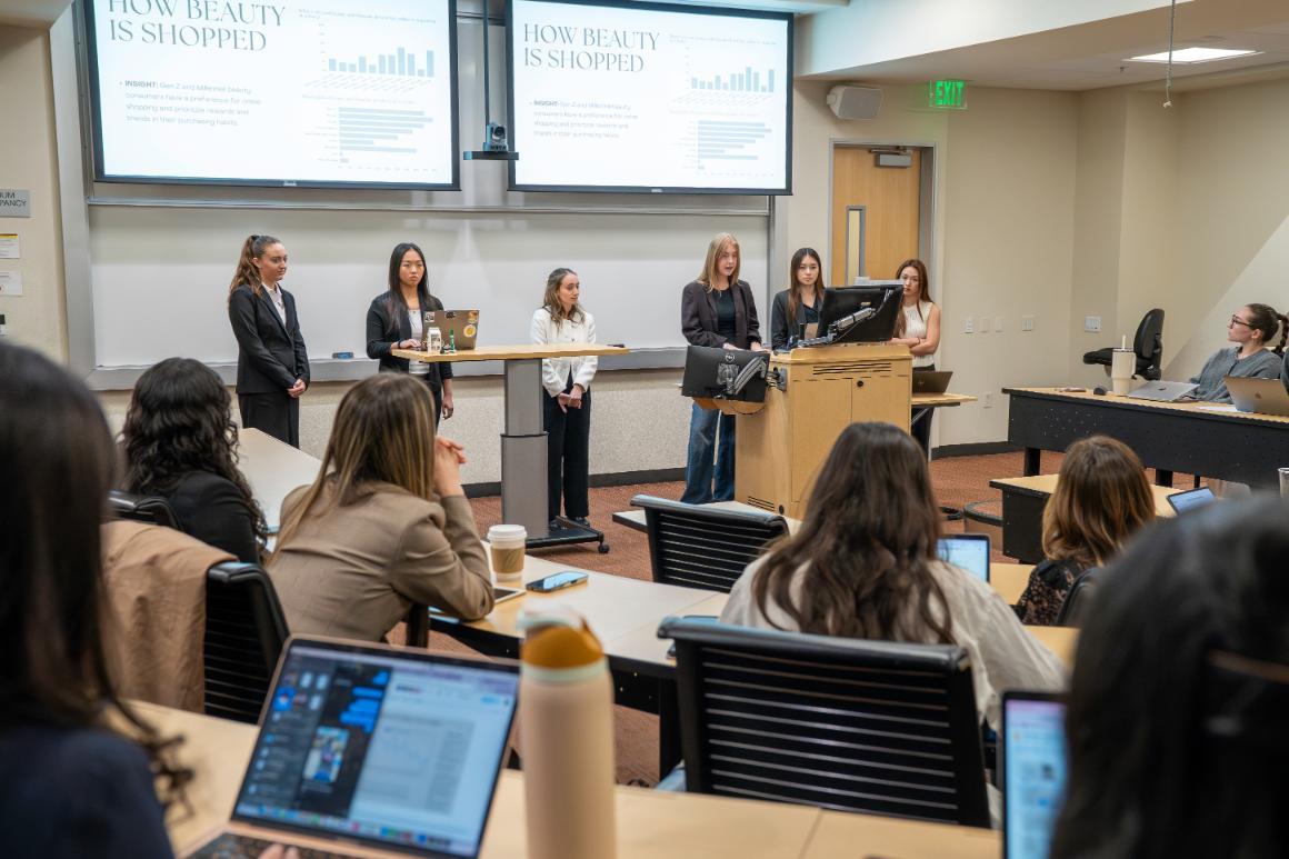 The following pictures show the SCU teams presenting to Amelia and receiving her reactions and feedback. What a wonderful opportunity for a senior in college to work with and gain insights from a seasoned retail executive. At the Retail Management Institute, we believe these types of experiences turbocharge our students' knowledge base, skill set, and confidence.