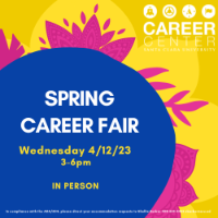All Santa Clara University students and alumni are invited to attend our 2023 Spring Career Fair. During the fair, you can: