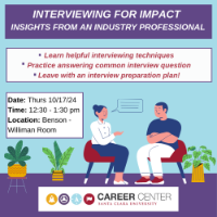 Tuesday, 10/17 Interviewing for Impact - Workshop #2: Industry Insights from a Professional, 12:30am - 1:30pm