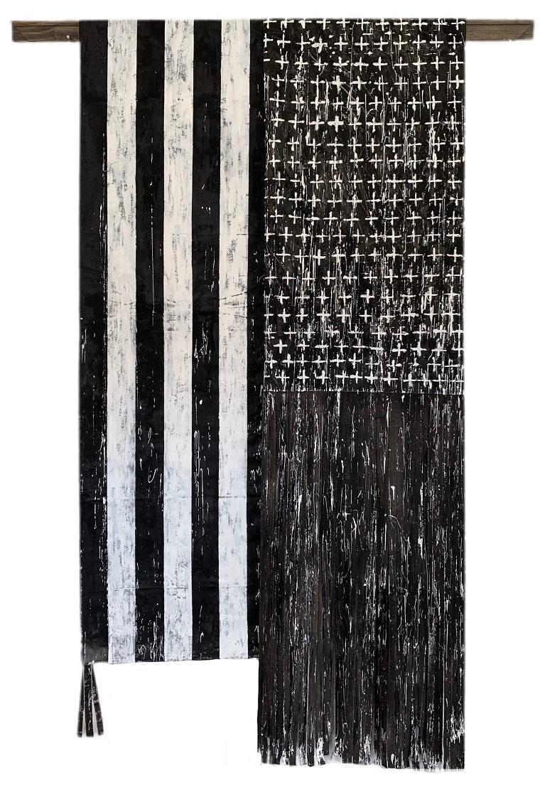 Oil, acrylic, enamel, and natural earth pigments on canvas with wood stretcher bar