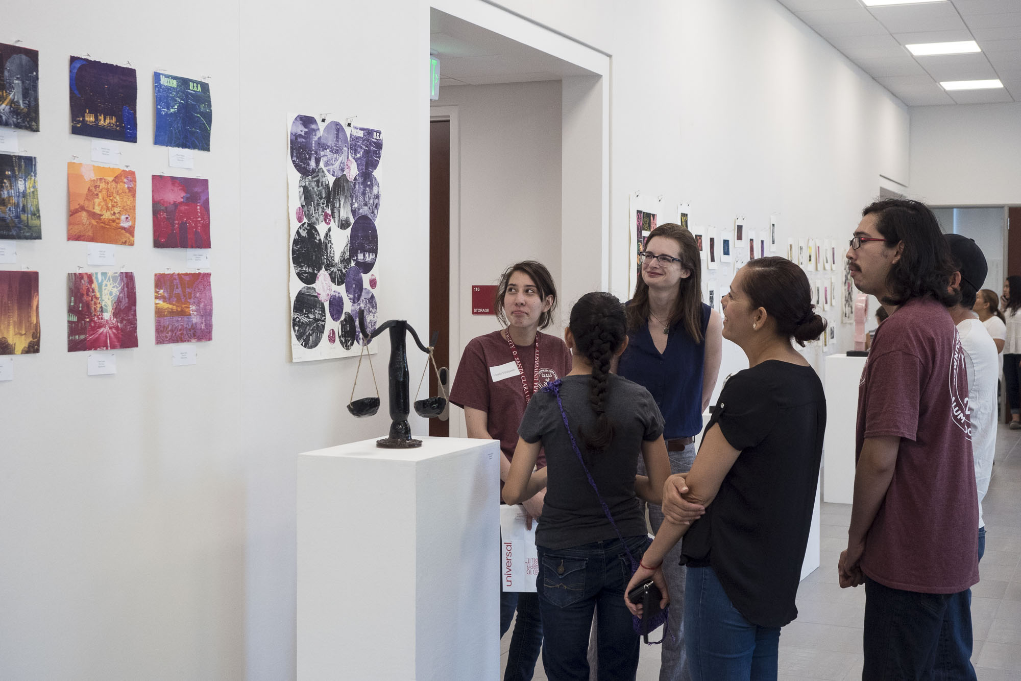 For the fourth year in a row the Art and Art History Department offered college level art and writing instruction to would-be first generation (students who would be the first in their families to attend college) high school students. This year the program saw several substantial changes. In addition to our partnership with Downtown College Prep we added Cristo Rey high school of San Jose. We also increased the number of students to 31, effectively doubling our number from the previous year. We also welcomed an SCU student intern to the team, who acted as a teaching assistant and coordinated the “Learn at Lunch” program, which covered such topics as: choosing a college, getting into college, and selecting a major. Lastly, we added new classes and faculty. The number of writing classes doubled and we added two sections of a digital printmaking class. At the end of the summer, over 100 students, relatives, parents, grandparents, and members of the SCU community gathered for an exhibition of the students art work.