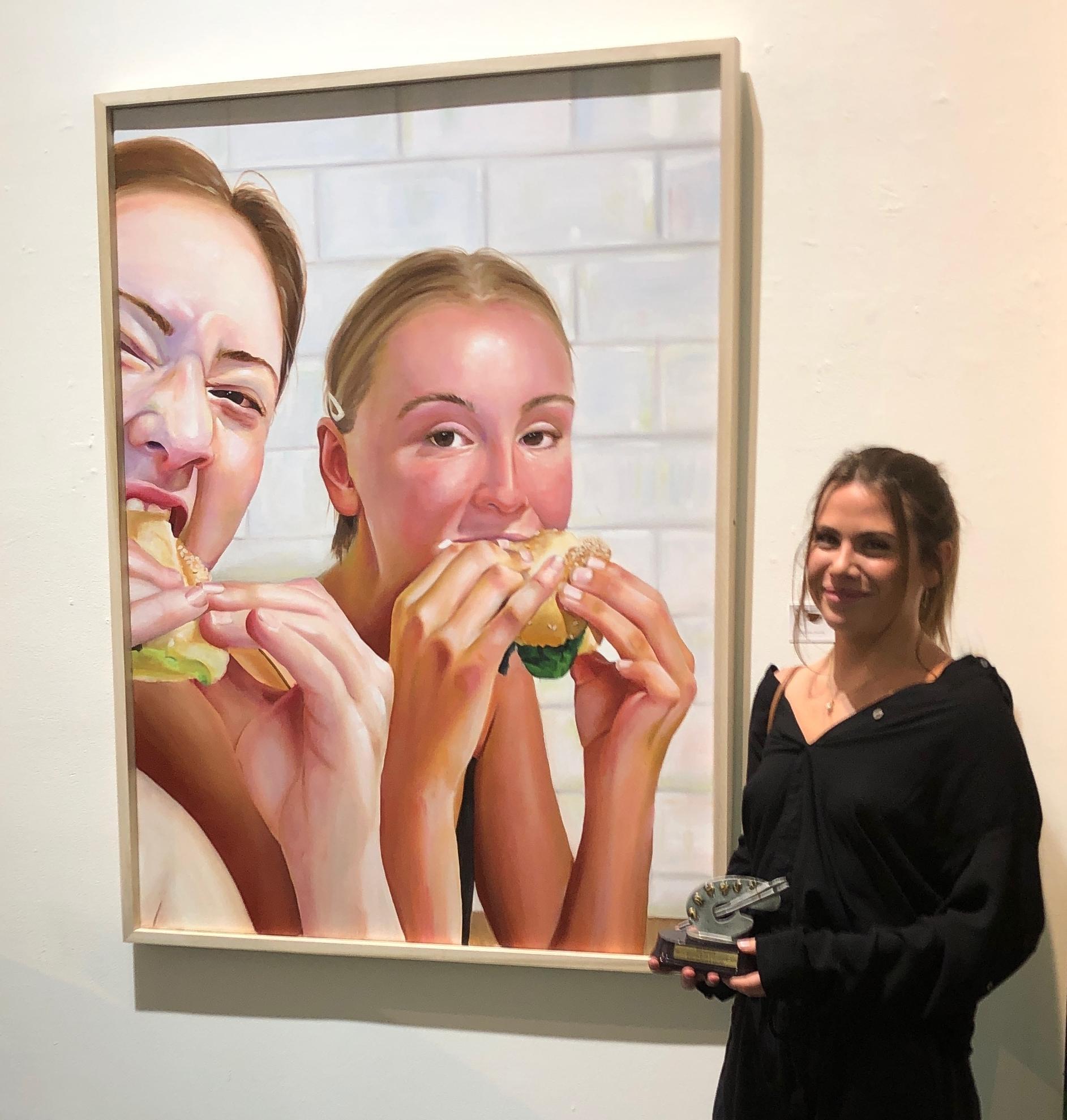Studio Art students from SCU won Best of Show again! Rhiannon Janeschild '20, a studio art major and art history major, was awarded the top prize in this year's Art of Painting in the 21st Century student competition at the Natsoulas Gallery in Davis. The exhibit features paintings from colleges around Northern California, including UC Berkeley, Sacramento State University, SF Art Institute, UC Davis and more. A Santa Clara trained student won second prize, Aliza Katzman who is currently at UC Berkeley but who spent her first two years at Santa Clara was recognized as well.