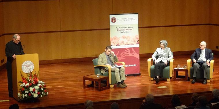 Dr. Elizabeth Johnson, CSJ launched the inaugural Rev. Francis L. Markey Women in Ministry Speaker Series lecture, on November 6, 2018, in the Mission Church at Santa Clara University with an inspiring and riveting talk entitled, “Your One Wild and Precious Life: Women On The Road of Ministry.