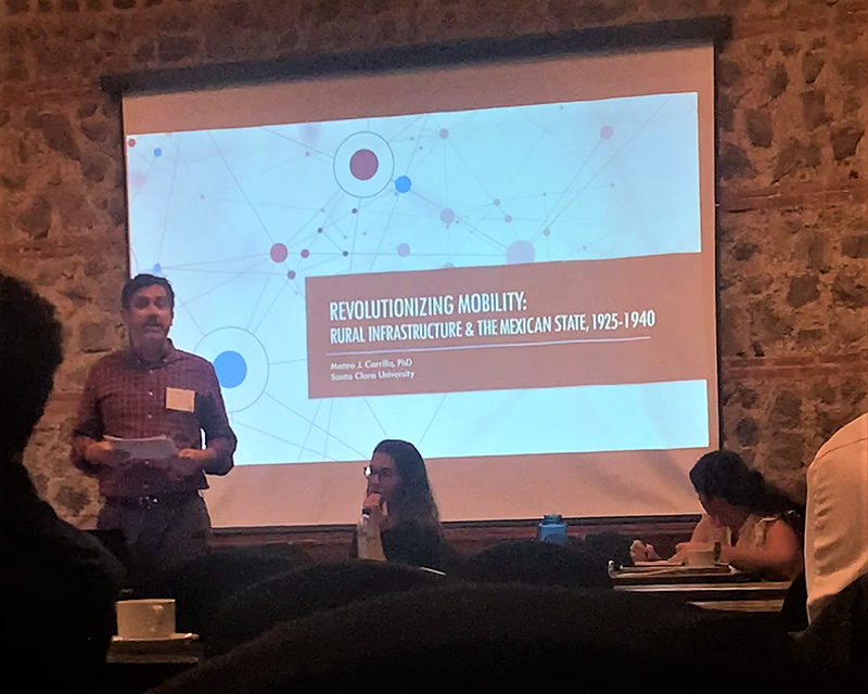 Mateo J. Carrillo organized a panel and presented a paper at the 2023 Southeastern Council of Latin American Studies (SECOLAS) Conference in Antigua, Guatemala. The title of the panel, which was held on Saturday, March 25, 2023, was "Transforming the Land, Building the State." Dr. Carrillo’s paper, “Revolutionizing Mobility: Rural Infrastructure and the Mexican State, 1925-1940,” explored how civil engineers deployed road and water technologies as well as modernist ideologies and nationalist propaganda to build the state in the years following the Mexican Revolution. He argues that in their drive to modernize rural landscapes and peoples via infrastructure these técnicos laid the groundwork for mass Mexican migration to the United States beginning in World War II. Dr. Carrillo was joined on the panel by María de los Ángeles Picone (Boston College), Sarah Hines (University of Oklahoma), and Carlos Dimas (University of Nevada-Las Vegas).