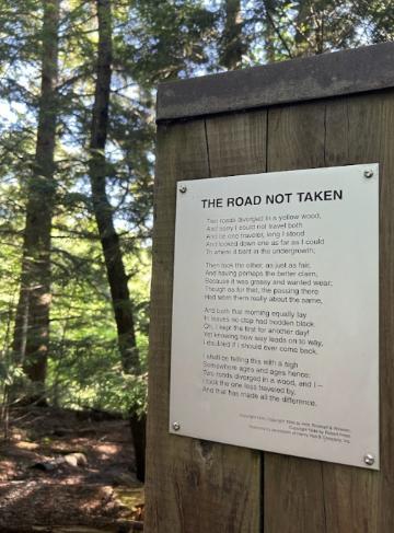 (From Robert Frost hiking trail next to Bread Loaf campus where selected poems dot the path)