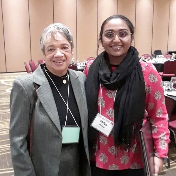 Philip was inspired by the amount of research done by the amazing women present. Whether using linear algebra, differential equations, or other tools, these mathematicians found ways to apply their knowledge toward goals like humanitarian relief or virus outbreak prevention. Philip is pictured with one of the “hidden figures” of NASA, Christine Darden, who overcame adversity in the pursuit of mathematical research.