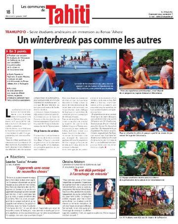 We were interviewed by the paper, La Depeche de Tahiti - see attached. I am interviewed in the paper (bottom right) and also spoke on the news.