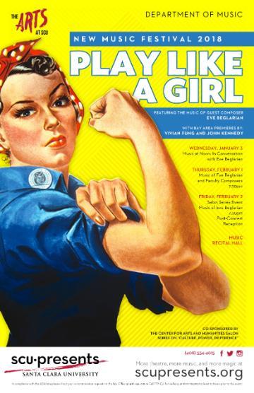 The Department of Music, in conjunction with the Center for Arts and Humanities 2018 Salon Series: Culture, Power, Difference, presents the 2018 New Music Festival, Play Like a Girl, featuring guest composer Eve Beglarian. This three-day festival taking place from January 31 to February 2, will explore issues of music, gender, and race and feature SCU student and faculty performers.