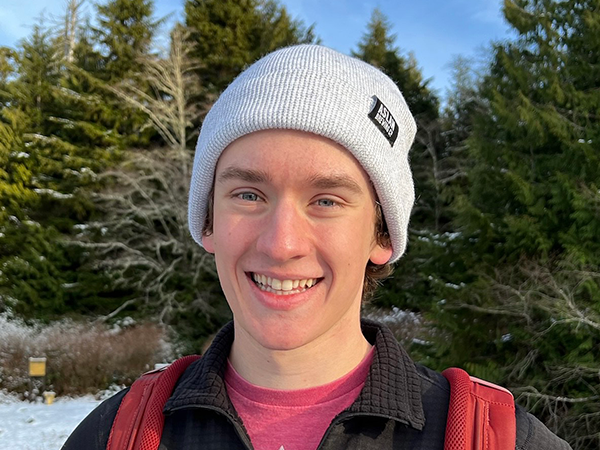 Riley Carpenter ’25 found a well-rounded education at Santa Clara, designing cutting-edge superconducting thin-film dark matter sensors while pursuing his passions in the humanities and arts.