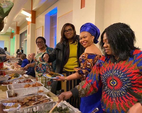 After the mass, attendees were welcomed to a reception with a DJ, an abundance of food, and long tables which encouraged fellowship and conversation. Professor Teresia Hinga was one of the speakers at the reception; she started by centering both the Beloved Community and a Rainbow People, which were imagined by Rev. Dr. Martin Luther King Jr. and Bishop Desmond Tutu, respectively. These communities would be centered around compassion, justice, fairness, love, solidarity, and an embrace of difference as a gift.