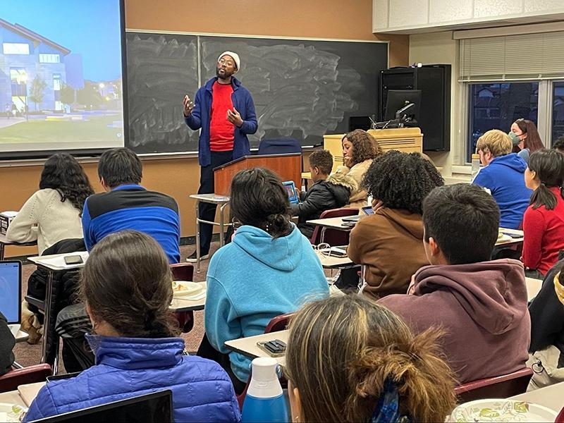 At the beginning of the conversation, Prof. Bryson White discussed his work with abolitionist theories and the connections to Christian theories like the Rapture. Using personal examples he was able to connect with the large number of participants on the importance of discussing the US prison system and the disappearance of Black men. After a quick lecture, he asked 2 questions for the participants to discuss in small groups. What are your first thoughts when you hear the word “prison” and what do they represent? What would it look like if we lived in an ideal world where everyone’s needs are met? Faculty and students answered these questions and then shared their answers with everyone.