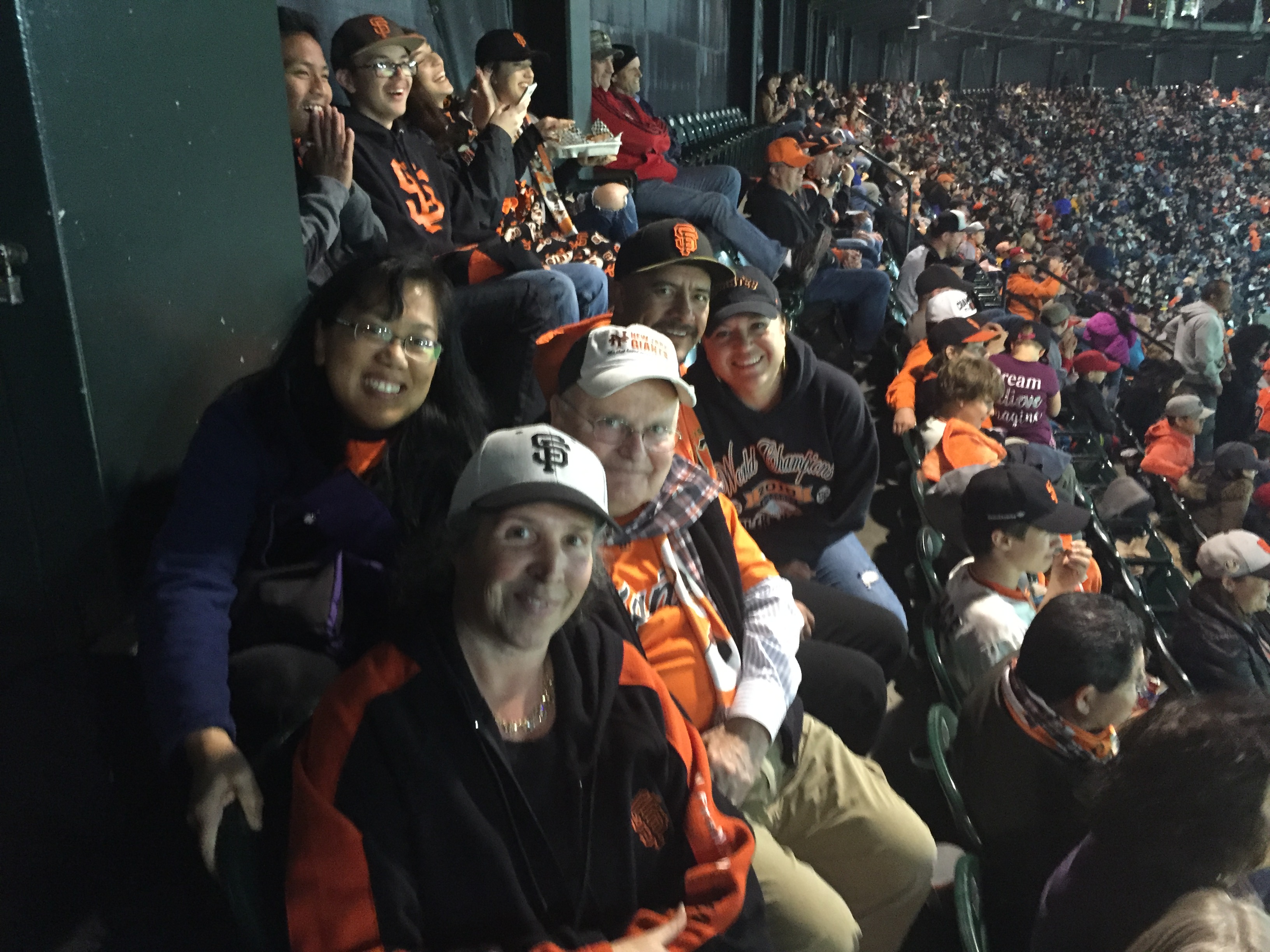 Group leader, Vicky Gonzalez organized a group of faculty & staff from the Religious Studies Dept. and College of Arts & Sciences who participated in the 18th annual trip to AT&T Park to see the SF Giants play against the San Diego Padres on Friday, April 28th. So far the Giants season hasn’t been very good, but everyone was fortunate to see a nice come from behind 4-3 victory. Although there was a Giants scarf giveaway, they weren’t needed since it was a pleasant, calm evening. We had some of our usual RS Department participants, but also had a nice variety of other College of Arts & Sciences friends from the Dean’s Office, Math/Computer Sciences, and History/Classics.
