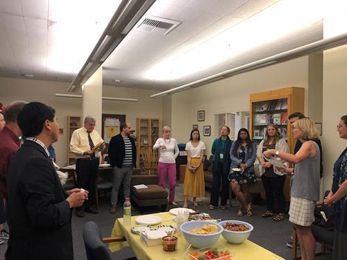 On Tuesday September 25, 2018, at the beginning of the second week of Fall quarter, a group of Religious Studies faculty and students gathered for a back-to-school mixer social event. About twenty faculty and students met over snacks and engaged in discussion about our summer adventures and plans for the upcoming school year. The students present included some of our majors and minors, as well as several undeclared students, two of whom declared a Religious Studies major and minor, respectively, shortly after the event ended. Overall it was an excellent way to begin what will hopefully be a wonderful 2018-19 academic year.
