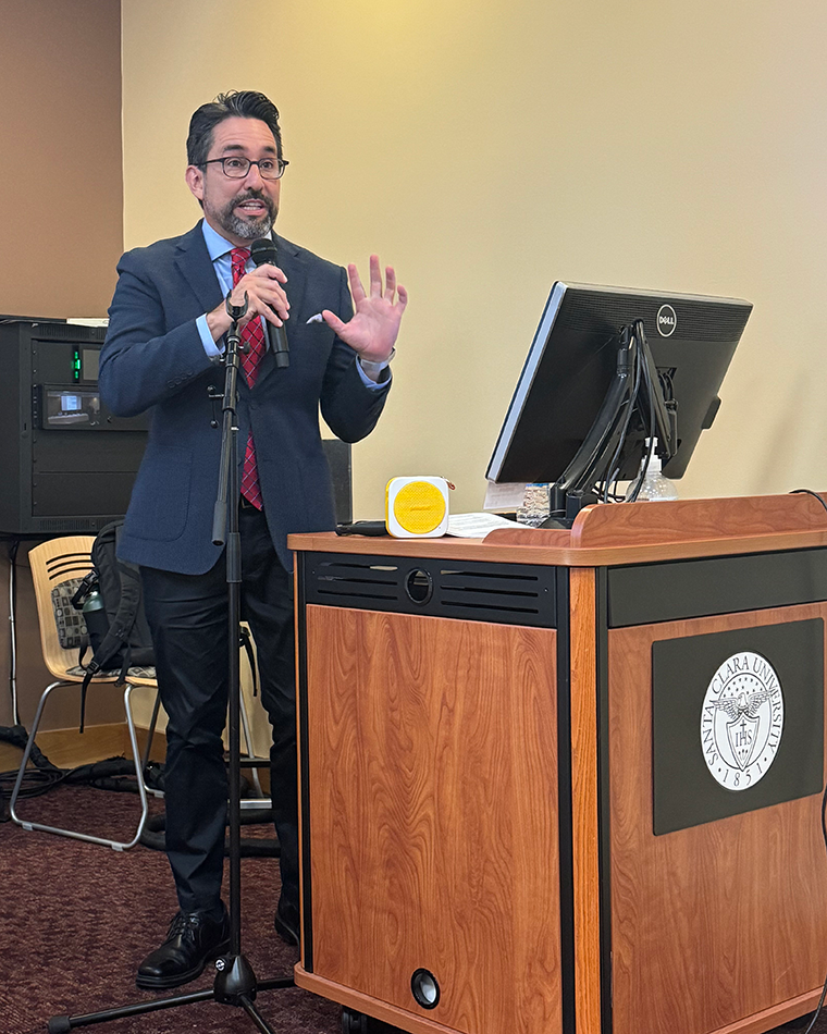 Moderator Chris TirresOn Monday, October 21, Religious Studies, Graduate Program in Pastoral Ministries and Jesuit School of Theology faculty as well as two Religious Studies minors joined together for a panel on Religion and Race in the 2024 Election. These faculty and students brought various perspectives and demonstrated the multiple ways that Religious Studies, theology and ethics, among others, can speak in meaningful ways to contemporary events. The event, held in the Benson Parlors, was well attended by faculty, staff and students, who asked thoughtful questions.