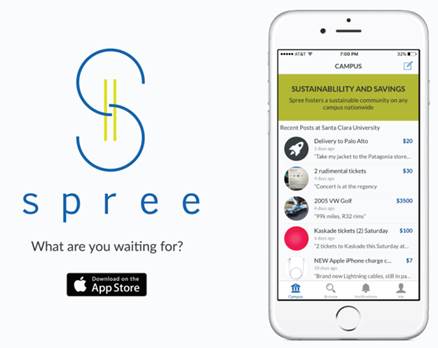 Listings appear similarly to Facebook’s scrolling Newsfeed with a picture, short description, and price for the good or service. Users can click on posts and begin internal messaging within the app with the seller and coordinate logistics and negotiate prices. There are currently 400+ users on Spree, so do your part to support your fellow Broncos and download the Spree - Student Marketplace app, which won the 2015 CIE Business Plan Pitch Competition Grand Prize! Not only will you rid yourself of unused things that you’ve accumulated over time, you will be promoting and embodying what it means to be sustainable. Keep those goods out of landfills and creating a safe, hyper-local place of commerce. It’s a win-win-win situation, so what are you waiting for?