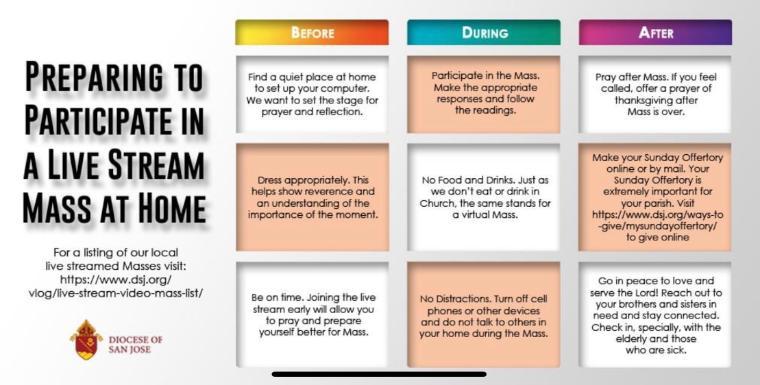 Information about in-person Masses and registration links may be found at the Mission Church's website.