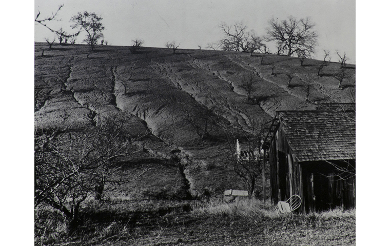 Unknown, Erosion destroyed hillside, 1/1/1938, 1938, black and white photograph, de Saisset Museum permanent collection, Santa Clara University, Purchased from Library of Congress, Washington, DC, USA, NDA.6.682