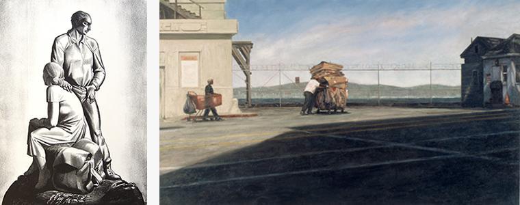 Images, left to right: Rockwell Kent, And Now Where?, 1936, lithograph, Courtesy of Plattsburgh State Art Museum, on loan from private collection. Christine Hanlon, Third Street Corridor, 1998, oil on canvas, courtesy of the artist.