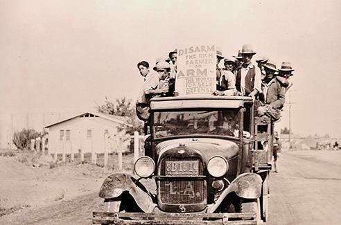 Image: Unknown photographer, Mexican workers on strike. California, 1933, photograph, source: Powell Studio, Corcoran, California, de Saisset Museum permanent collection, purchased from Library of Congress, Washington, D.C., NDA 6.683.