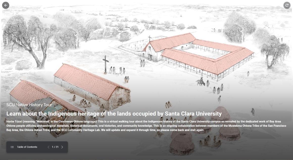 The SCU Native History Tour, developed in collaboration with members of San Francisco Bay Area Ohlone communities, showcases the Indigenous history of the Santa Clara University campus.