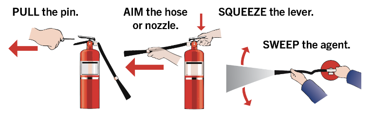 If you decide to try and extinguish a small fire with a fire extinguisher, remember the acronym P.A.S.S.