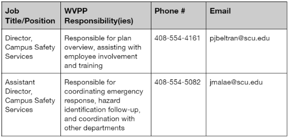 Santa Clara University ensures that the WVPP plan shall be in writing and shall be available and easily accessible to employees, authorized employee representatives, and representatives of Cal/OSHA at all times.