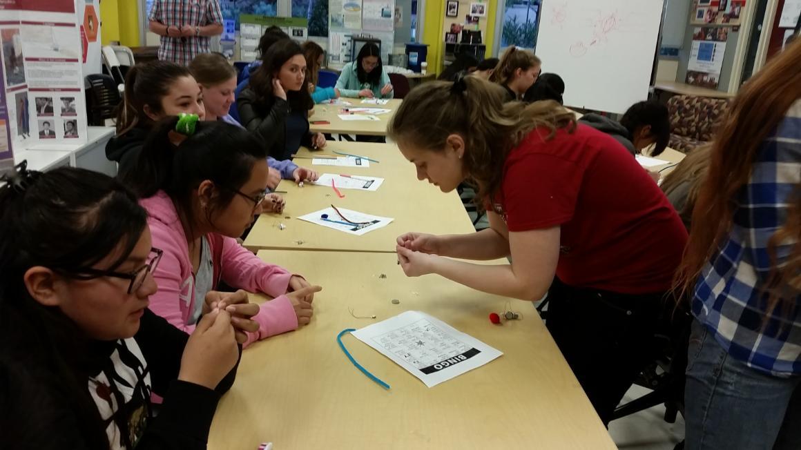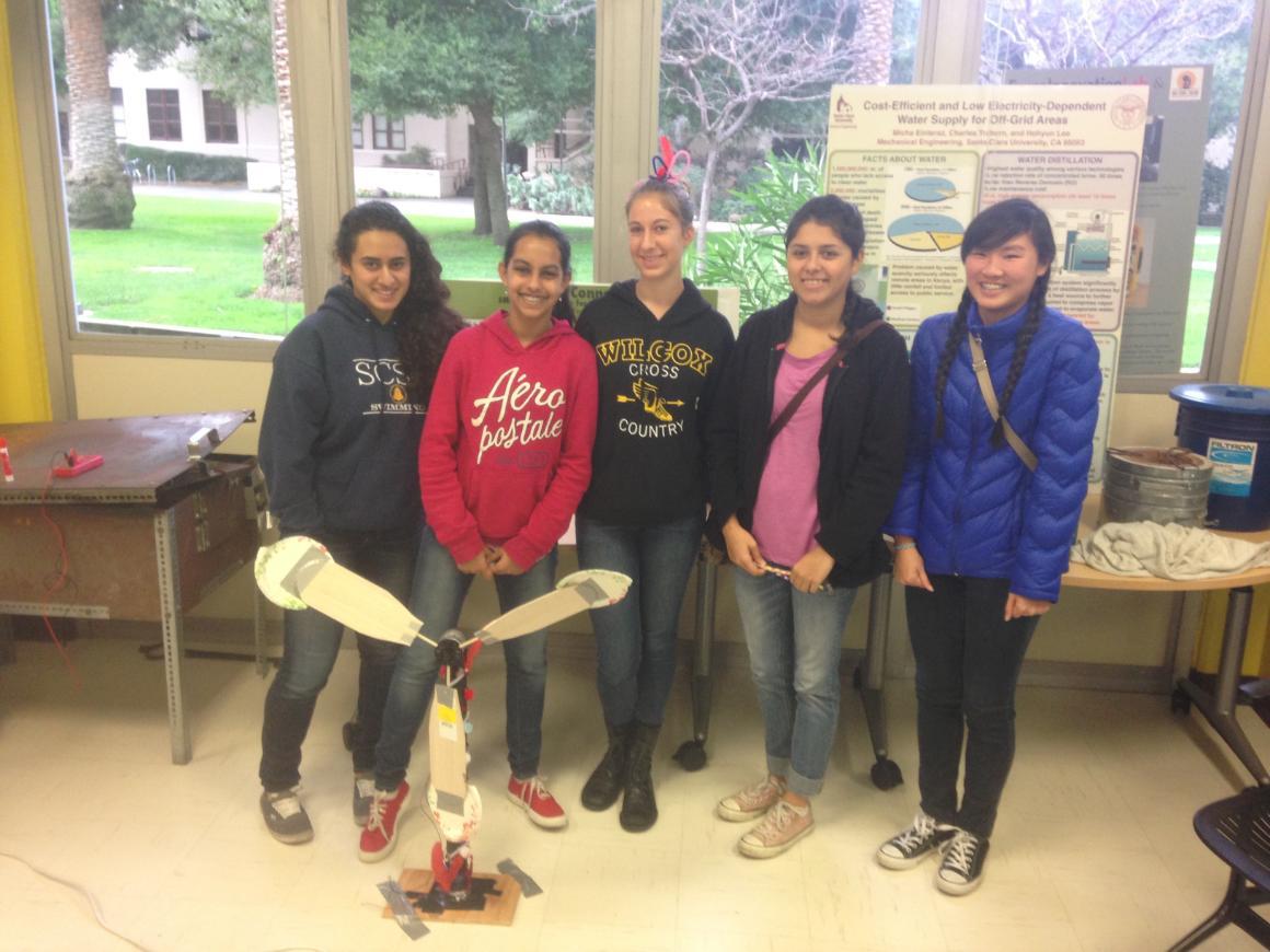One Step Ahead brings female high school students from the GAINS program (Girls Achieving in Non-Traditional Subjects) to campus to learn about the different engineering disciplines and participate in hands-on engineering activities. Coordinated by the SCU student chapter of The Society of Women Engineers (SWE), undergraduate students introduce engineering to the high school students, effectively demonstrating electrical, computer, mechanical, and civil engineering concepts through fun experiments such as a tsunami simulation, programming exercises, a lesson in how gears work, and through the use of a bridge construction simulation program.