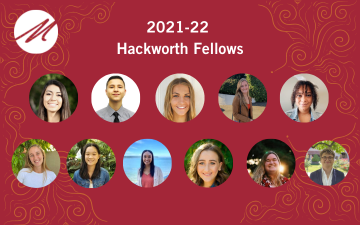 Mikayla Apodaca ’23, Gerryk Madrigal Ayala ’23, Emily Bachar ’22, Anna Demopolous ’22, Grace Evans ’23, Keren Goor ’23, Betty Hou ’22, Morayo Kamson ’22, Sydney Lenoch ’22, Emma Samuels ’22, and Jackson Stanich ’23, will make up this year’s cohort of Hackworth Fellows. The 11 students will focus on the ethics associated with a variety of topics including immigration, the social sector, health care and medicine, internet, technology, journalism, and issues affecting the SCU campus. Find out more about each of the fellows and their individual work on the Hackworth Fellowship page.