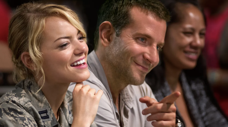 Emma Stone as Allison Ng and co-star Bradley Cooper as Brian Gilcrest in the 2015 film Aloha, photo courtesy of Columbia Pictures.