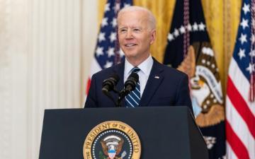President Joe Biden smiles during his first official press conference Thursday, March 25, 2021, in the East Room of the White House. Photo by: Adam Schultz/Official White House Photo/Flikr.