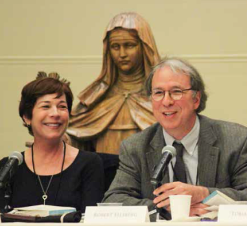 1. In a panel entitled “Keeping the Faith: Catholic Writers on Heroes of Conscience,” author and editor of Orbis books Robert Ellsberg reflects with author Bo Caldwell on their mutual contributions to Not Less Than Everything: Catholic Writers on Heroes of Conscience from Joan of Arc to Oscar Romero, ed. Catherine Wolff. This Fall 2013 Bannan Institute panel event also included the reflections of contributors Ron Hansen and Tobias Wolff. |