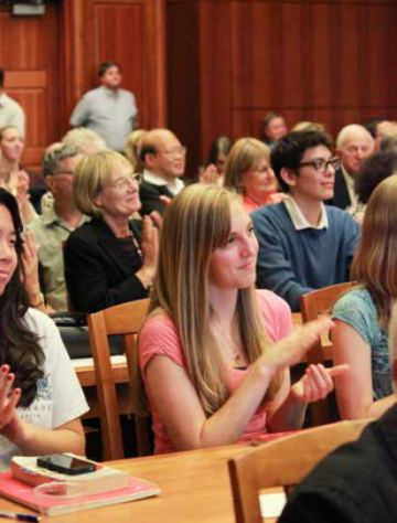 9. During Robinson’s time at Santa Clara University, she was able to join faculty, staff, students, and administrators in lively conversations over lunch and dinner, as well as share in a class visit with undergraduate students studying her celebrated novel, Gilead. |
