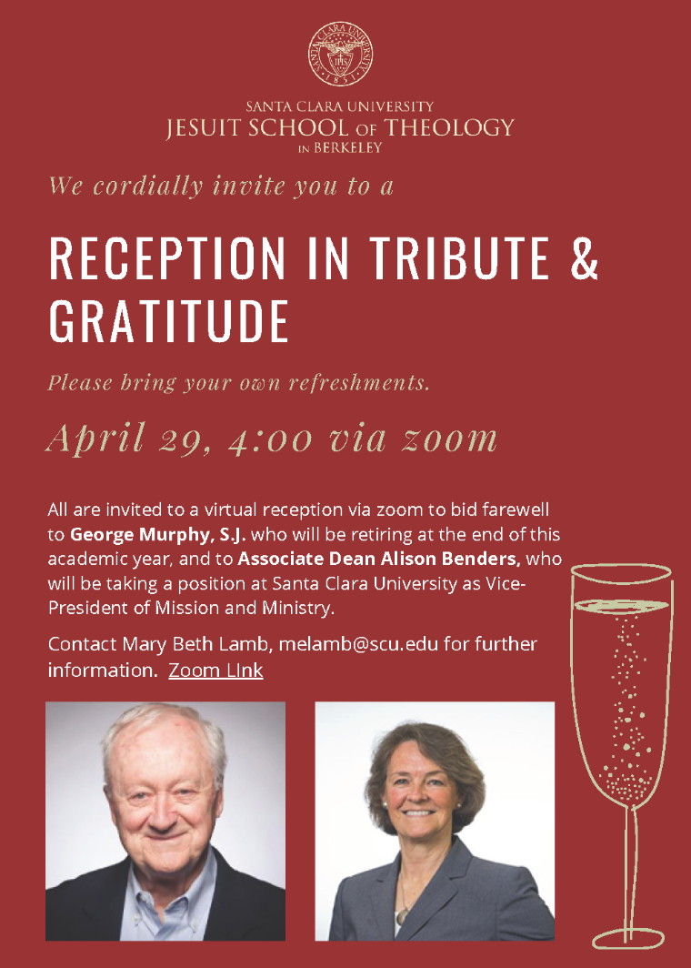 - JST's student journal New Horizons is seeking academic papers, pastoral reflections, and art from graduate students on themes of welcoming the stranger in Fratelli tutti, ranging from climate change to crises of migration and economy. Submissions are accepted on a rolling basis and are due by May 28, 2021, to be published in August 2021. Please find the full Call for Papers here and email newhorizonsjst@scu.edu with any questions.