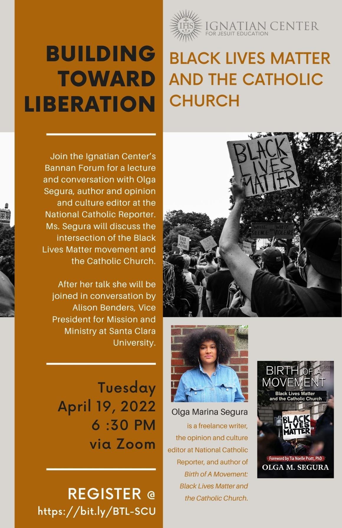 Join the Bannan Forum of the SCU Ignatian Center for Jesuit Education for a lecture and conversation with Olga Segura, author and opinion and culture editor at the National Catholic Reporter. Ms. Segura will discuss the intersection of the Black Lives Matter movement and the Catholic Church. For more information and registration to receive the Zoom link.